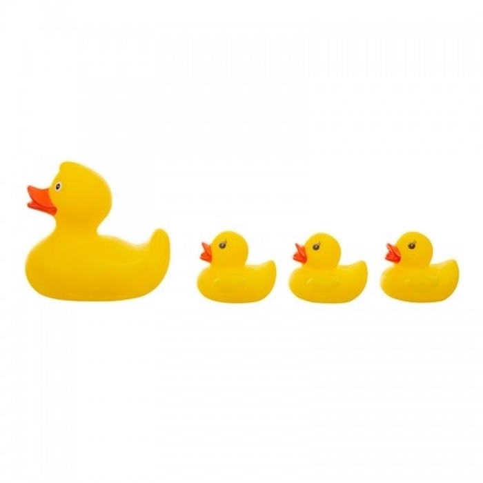 Το σετ περιλαμβάνει 4 λαστιχένια παιχνίδια: μία μαμά πάπια και 3 παπάκια.