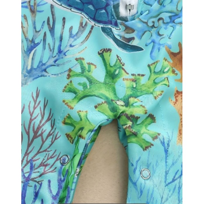 Ολόσωμο μαγιό με ποδαράκι και μανικάκι για τον μικρό θαλάσσιο εξερευνητή.