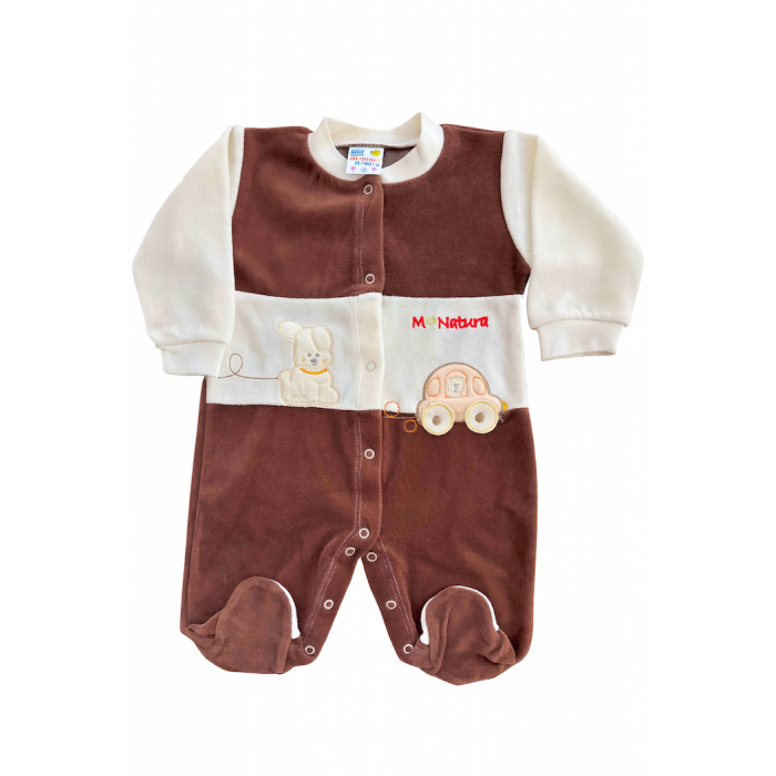 - Διχρωμία σε κρεμ και καφέ απόχρωση, με παιχνιδιάρικα κεντήματα (αρκουδάκι και αυτοκινητάκι).